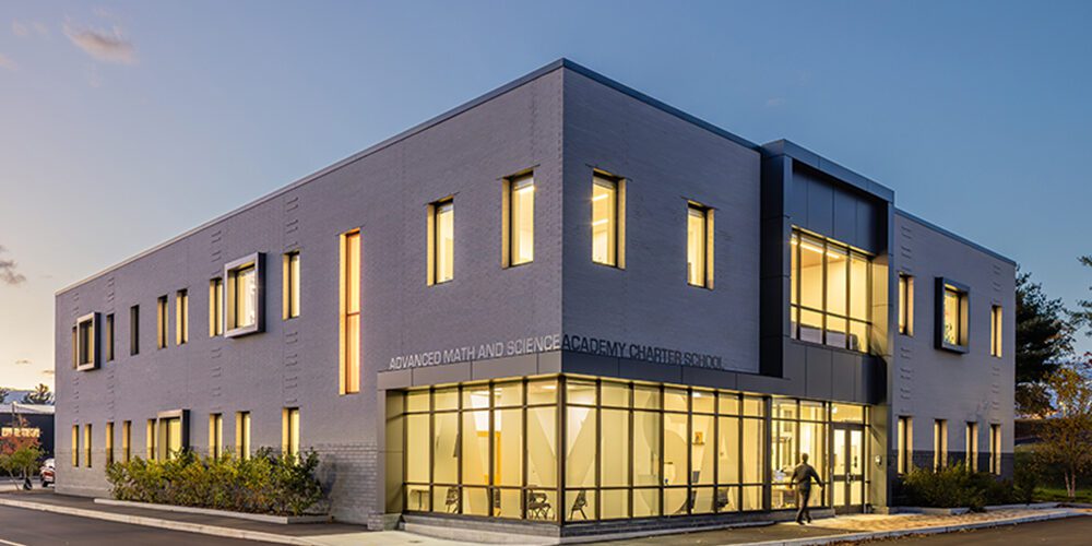 Marlborough, MA Finegold Alexander Architects completed the first new academic building on campus for the Advanced Math and Science Academy (AMSA) Charter School. This September, the main building – which houses the main administrative offices, new classrooms, and science labs – opened to students for the school year, serving the Class of 2032 as the first to use it throughout their entire middle and high school career. The main building offers students comprehensive learning opportunities supported by classroom technology.
