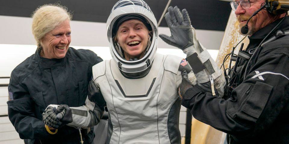 Nasa’s Zena Cardman is helped out of the SpaceX Dragon capsule after the successful landing. Photo: Nasa/AP
