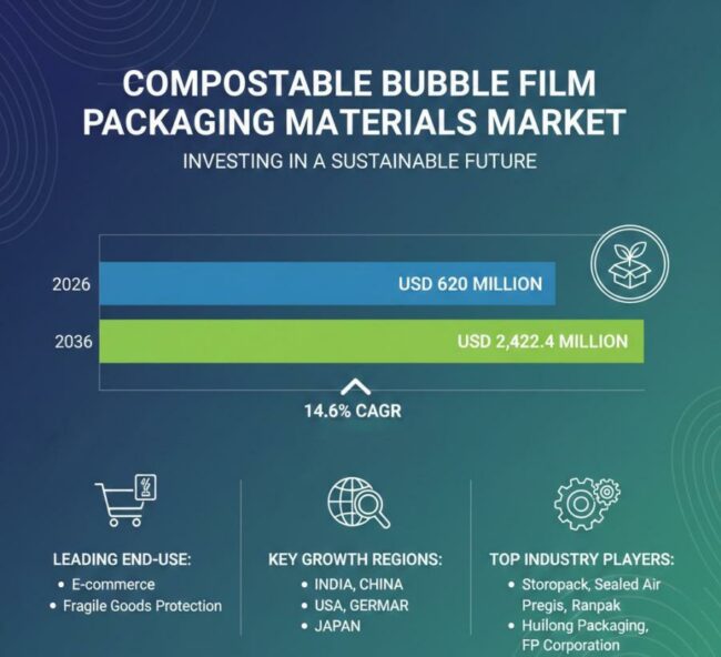 Compostable Bubble Film Packaging Market to Reach USD 2,422.4M by 2036, Growing at 14.6% CAGR Driven by E-Commerce