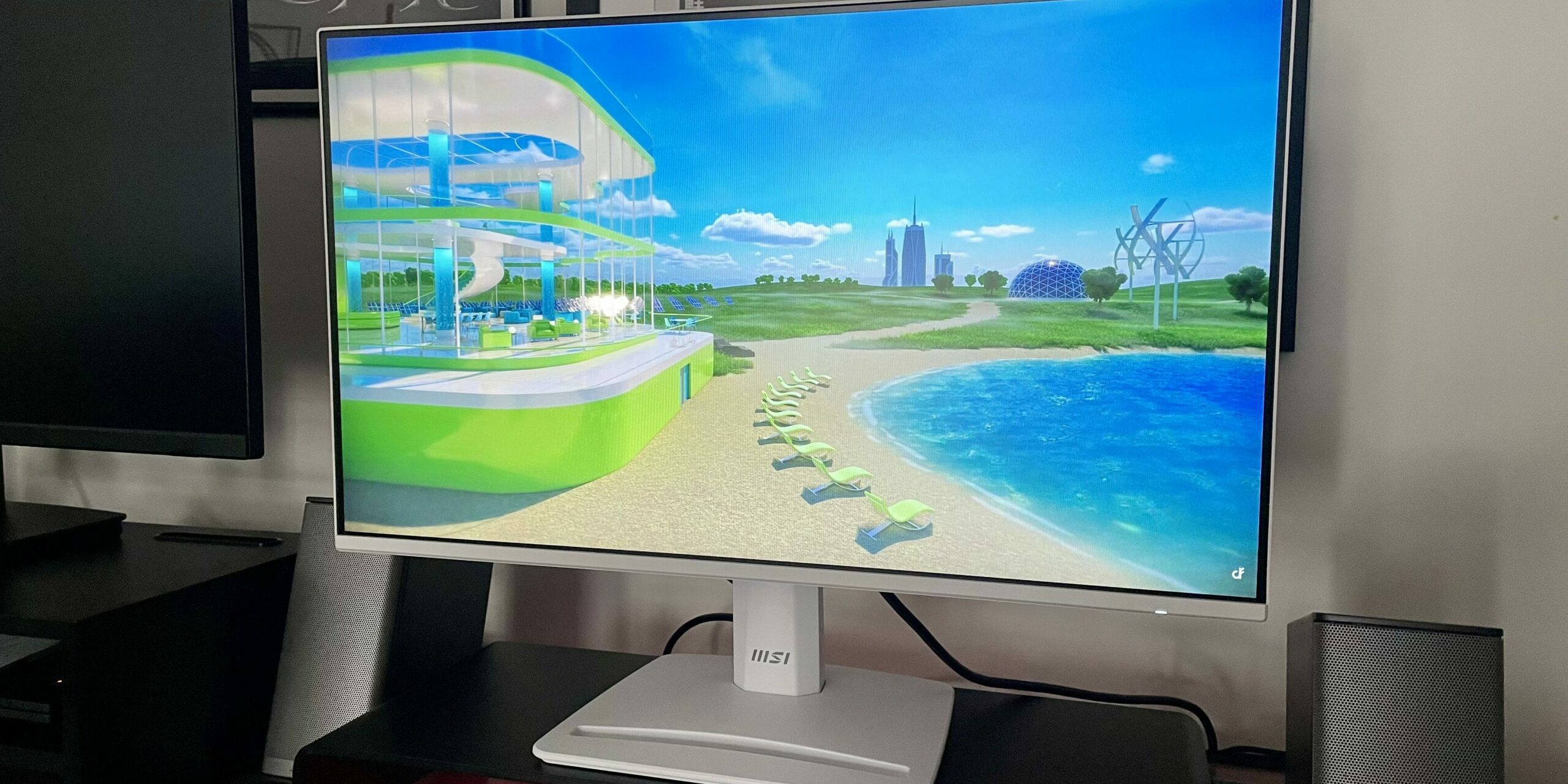 Sitting directly in front of the monitor will give the best viewing experience, as moving from one side to the other will dim and obfuscate the opposite corner. High-end monitors are very good at projecting an evenly illuminated, bright image across the entire screen, no matter the angle you’re viewing from. Not the case, here.
