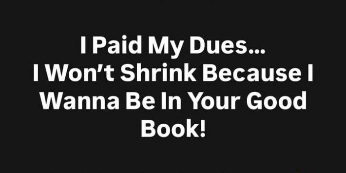 I won’t shrink because I wanna be in your good book!